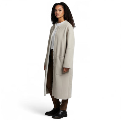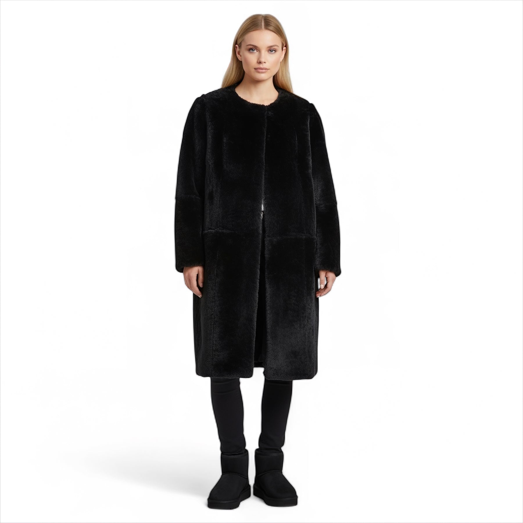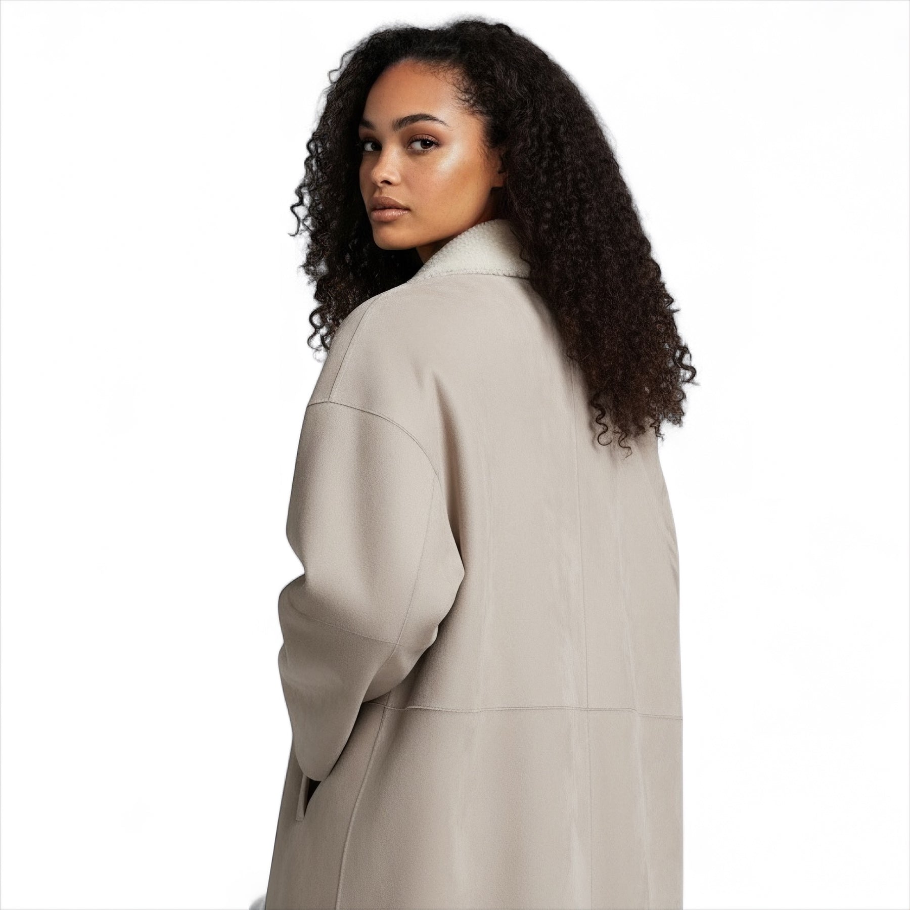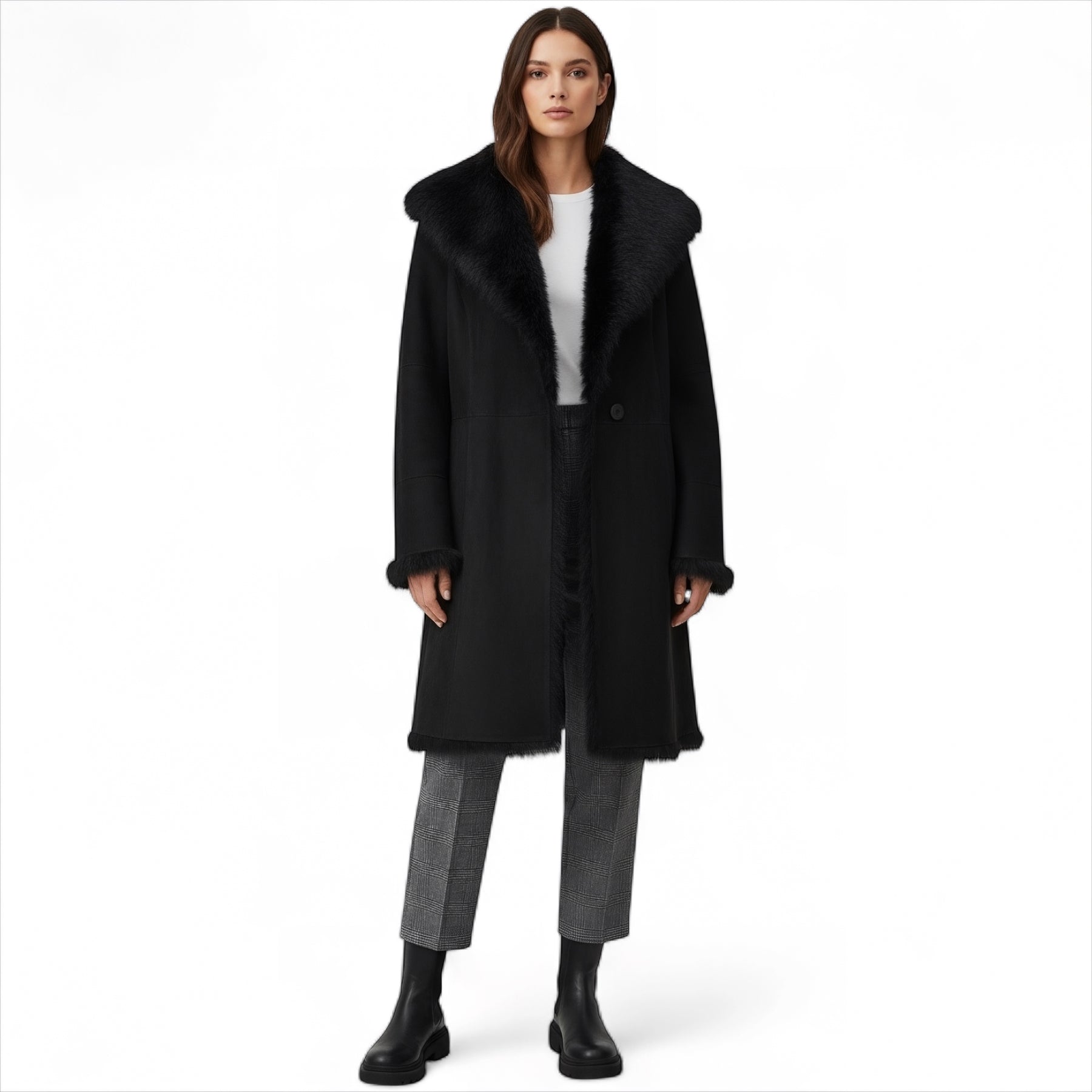 Plush, natural, and effortlessly refined — the Vanesa Coat reimagines a classic ‘70s silhouette with modern ease. Crafted from ultra-soft Toscana sheepskin, it drapes beautifully in a knee-length cut with an oversized collar and hidden front closures for a clean, sculpted look. Sheepskin-lined pockets add an indulgent touch of warmth, making it a timeless piece you’ll reach for season after season. Pair it with denim, knits, or evening layers — luxury has never felt this natural.