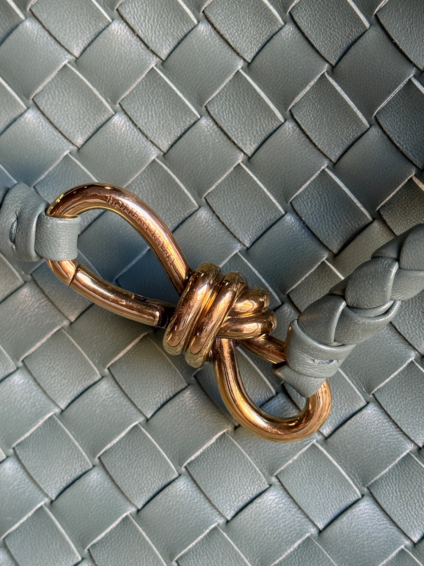 Please note: This piece originates from a major U.S. luxury retailer and was part of their display collection. Removable shoulder strap and pouch are not included.
