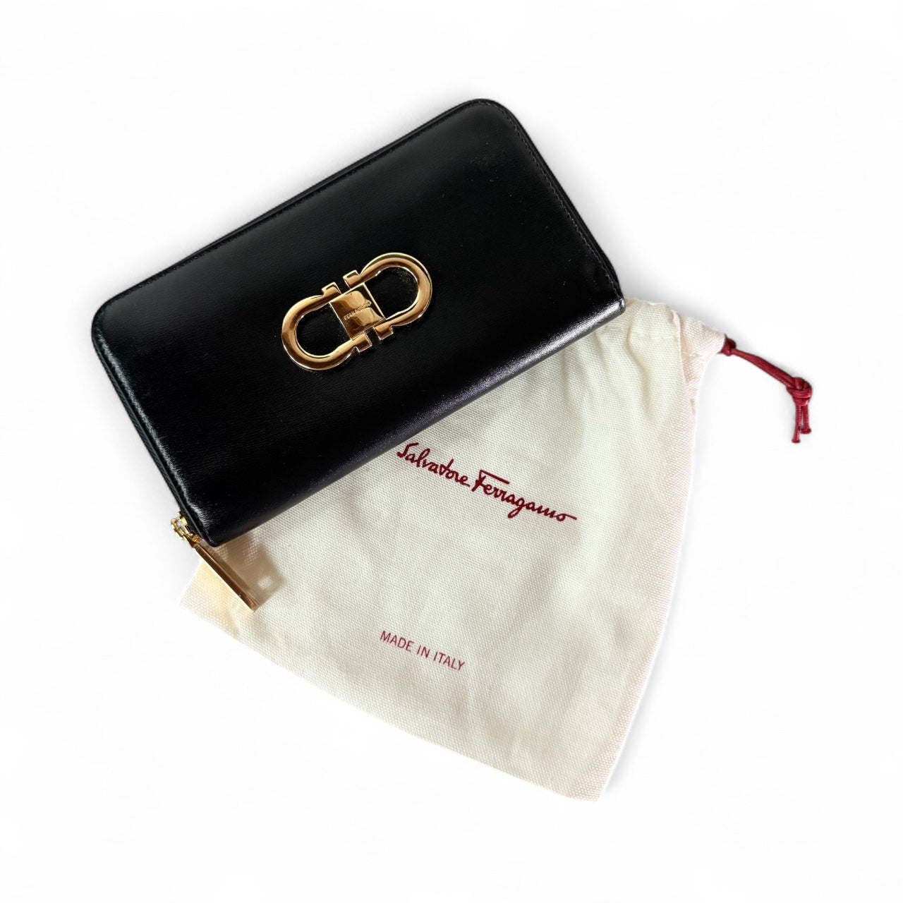 SALVATORE FERRAGAMO Gancini Continental Wallet - Black/Flame Red