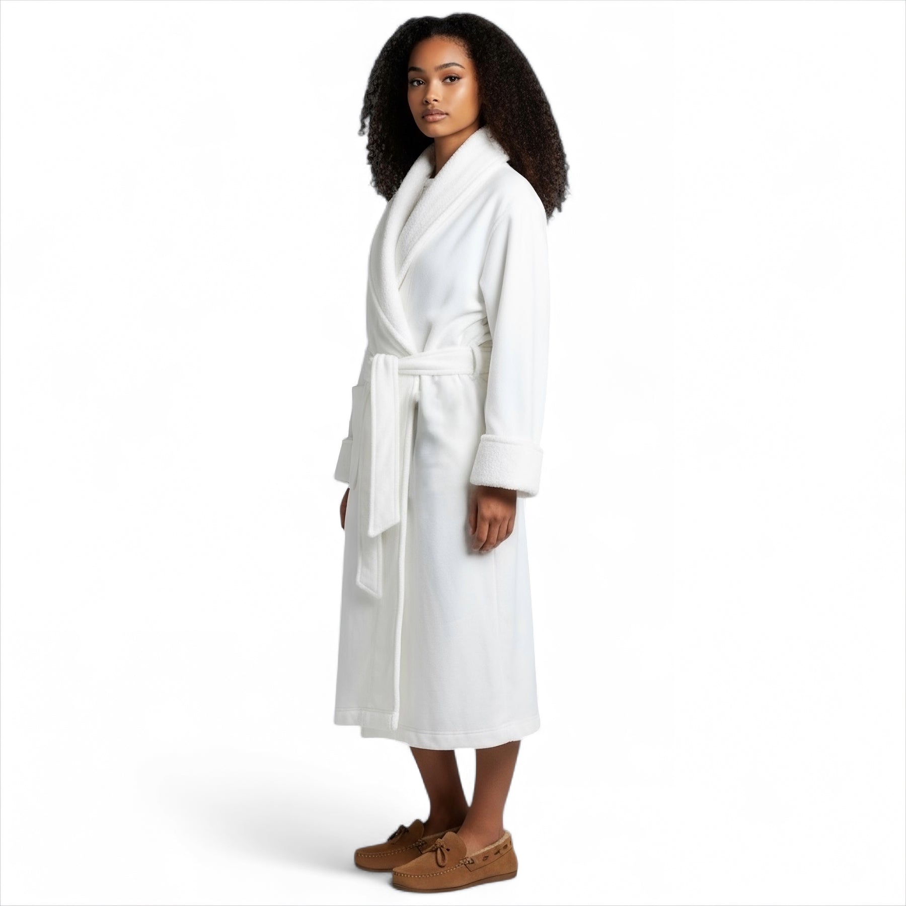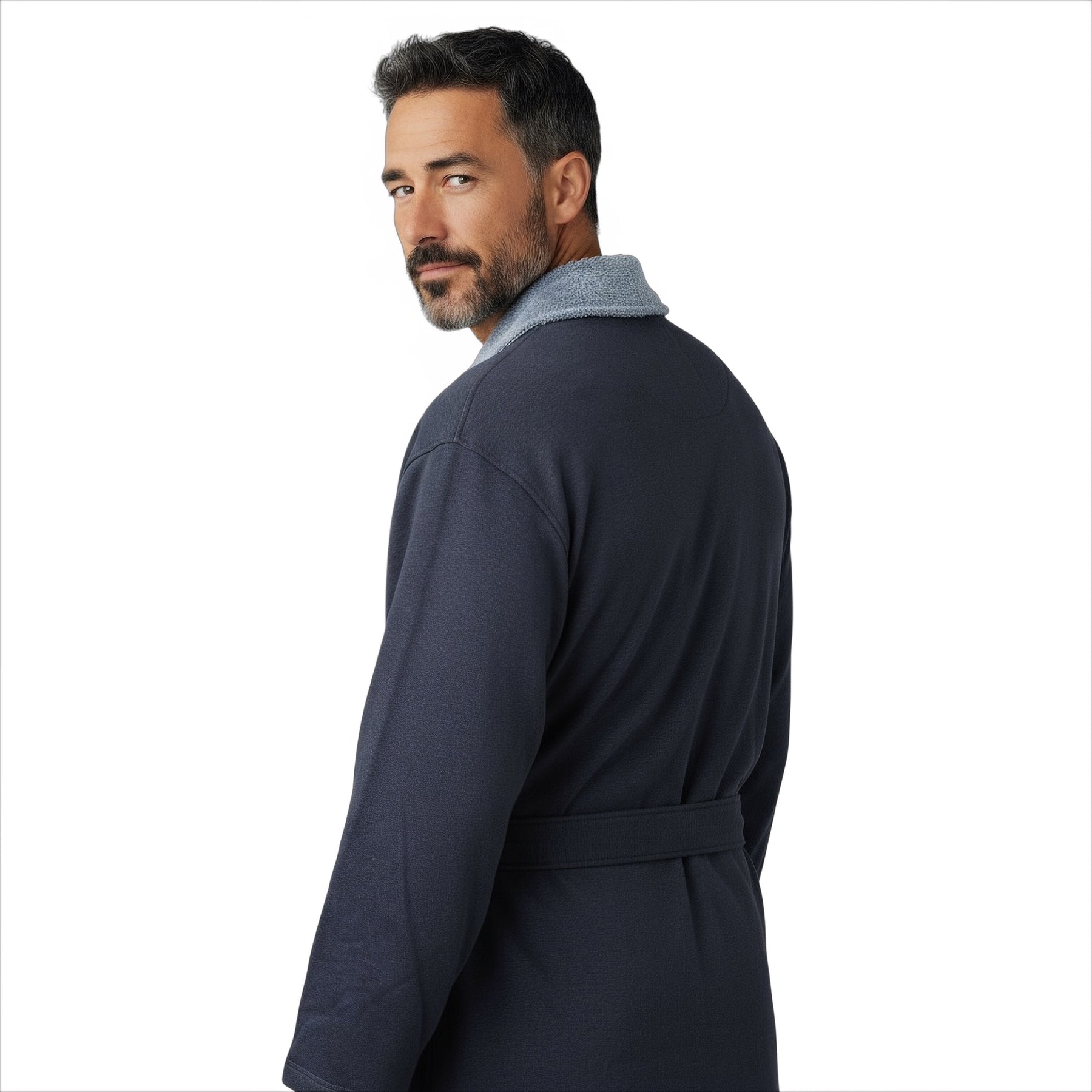 Crafted for cozy vibes, this shawl-collar robe features a speckled lightweight double-knit fleece that’s soft inside and out. With a jersey exterior and plush fleece lining, it delivers effortless warmth and a relaxed fit that feels as good as it looks. Thoughtful details like a self-tie belt, handy patch pockets, and an above-calf length make it as functional as it is stylish. Plus, it’s made with Responsible Cotton for a more sustainable touch.